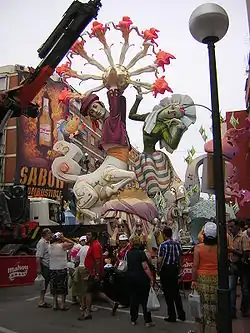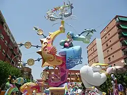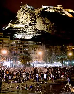 The Bonfires of Saint John (Spanish: Hogueras de San Juan, Valencian: Fogueres de Sant Joan)[1] are a traditional and popular festival celebrated in the city of Alicante, Spain, from 19 to 24 June.[2] The celebration ultimately stems from a tradition of bonfires for Saint John's Eve that can be found in many places, among them the Mediterranean coast of Spain, especially Catalonia, Galicia and the Valencian Community; in Alicante, it's the official and most important festivity in the city. It was officially declared as a Fiesta of International Tourist Interest[3] in 1983 and a Bien de Interés Cultural in 2014.[4]