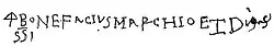- ^ Boniface's title (dux et marchio) has been given as duke of Lucca, or marquis of Mantua and Ferrara.