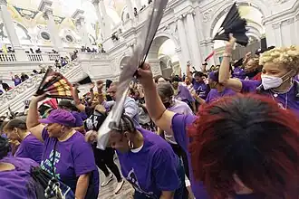 Celebrities and public figures filmed performing the dance and/or clips to the viral song include news anchor Robin Roberts on Good Morning America,[10] dancers at the Library of Congress,[11] former US first lady Michelle Obama,[12] singer Beyoncé on the Cowboy Carter Tour,[13] singer Fantasia,[14] 2024 US presidential candidate and former Vice President Kamala Harris,[15] performers with UniverSoul Circus,[16] and the Atlanta, Georgia, police department.[17] Numerous 2025 high school, college and other graduations also featured the song in their ceremonies.[18][19][20] The song was performed at the Red Carpet Live Show preceding the BET Awards 2025[21][22] [23] and at Game 1 of the NBA Finals.[24] In July 2025, the song will be performed at the Kevin Hart Fever Fest preceding the Indiana Fever WNBA All-star event.[25] [26] [27]