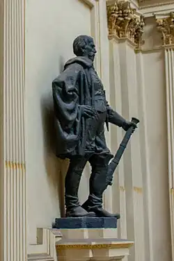 Manuel de Borba Gato (São Paulo, 1649Sabará, 1734) was a bandeirante in the Captaincy of São Vicente.[1] He began his career with his father-in-law Fernão Dias Pais. When he died in 1718 he held the office of Juiz ordinário of the town of Sabará. It is not known where he is buried, perhaps in the Capela de Santo Antônio or the Capela de Santana in the old town of Sabará, or even, according to various writers, in Paraopeba where he had an estate. Beyond being a discoverer of mines, he was an effective administrator at the end of his life.