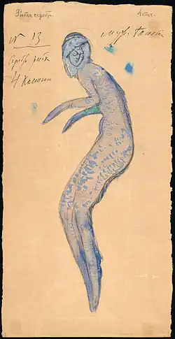 1910 – P. I. Chaikovsky's ballet The Four Seasons, staged by the pupils of the Imperial School of Choreography at their annual review on March 26, is apparently the first collaborative project of Anisfeld and Fokine. Anisfeld executes Bakst's designs for Sheherezade in Paris, and spends the summer in Concarneau in Brittany.