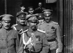Savinkov returned to Russia in April 1917 after the February Revolution.[51] He quickly became involved in the political turmoil of Petrograd, aligning himself with the Russian Provisional Government and advocating for a continuation of the war effort. He was appointed commissar of the 7th Army on the Southwestern Front and later chief commissar of the entire front.[52] In these roles, he worked to restore discipline and combat defeatist agitation, particularly from the Bolsheviks.[53]