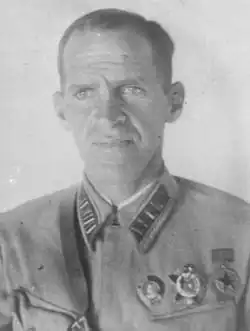 Boris Mikhailovich Skvortsov (Russian: Борис Михайлович Скворцов; 10 July 1902 – 12 May 1946) was a Red Army major general of tank forces who rose to command the 5th Guards Mechanized Corps during World War II.