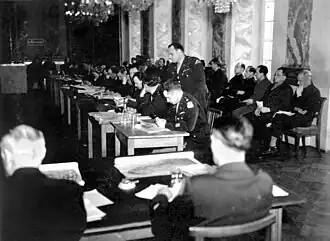 Following the British occupation of Borkum, a more substantive investigation was conducted by a United States Army Intelligence Corps team.[2]: 190 With this background, the Borkum Island war trial itself took place at Ludwigsburg Palace between February 6 and March 22, 1946[2]: 183 in the case of U.S. v Kurt Goebell et al. The court found all accused guilty of "common criminal design" and some members guilty of unlawful murder.[4]