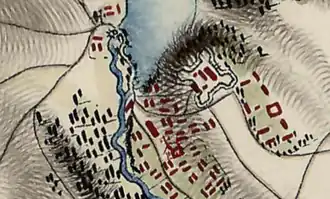 The map of the Austrian military cartographer Friedrich von Mieg Koenigsreiches Galizien und Lodomerien 1779–1782[10] clearly shows the outlines of Borky Castle with four bastions connected by a solid wall.