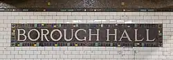 - ^ Cox, Jeremiah (June 18, 2009). "A Borough Hall name tablet, it has a fairly colorful border". subwaynut.com. Archived from the original on March 8, 2016. Retrieved August 6, 2017.