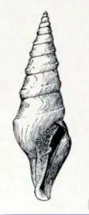 (Original description) The slender shell is acute with about ten whorls. Its color is pinkish white, with a pale brown periostracum. The spire is longer than the aperture. The nuclear whorls are smooth, turgid, the subsequent turns carrying a rounded low keel, usually in front of the middle of the whorls forming the pire, the area between which and the suture is flatly impressed, the whorl in front gently rounded. On some of the early whorls the keel is slightly undulated, but not regularly nodulous. Besides the lines of growth, both the fasciole and the anterior part of the whorl show indications under a lens of obscure regular distant spiral striae, and are also more or less marked with a faint vermicular reticulation of the surface. The distinct suture is not appressed. The aperture is narrow. The anal sulcus is deep and wide, reaching the suture The outer lip is thin, sharp, and arcuately produced. The inner lip is slightly eroded, polished, with no callus. There is plication at the proximal end of the columella. The axis is impervious, cnual short, wide, deep, slightly recurved with a fairly well-marked fascicle.[2]