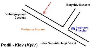 Borychiv Descent (Ukrainian: Боричів узвіз, translit.: Borychiv uzviz) is a historic descent in the historical and merchant quarter of Kyiv, the Podil (Podol) neighbourhood. It is located near the Poshtova Square.