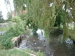In 850, the original village church was built possibly on the site of a Roman building, and in the 10th century was replaced with Holy Trinity Church, situated beside Bosham Quay, that still serves as the local place of worship. There is a tradition that a daughter of Canute the Great drowned in a nearby brook and was buried there, although there seems to be little evidence for this. The tradition was originally linked to a fourteenth- or fifteenth-century effigy.[12] In 1865 a coffin containing a child's skeleton was discovered, buried in the nave in front of what is now the chancel of Holy Trinity Church.[9] This was thought to be Canute's daughter.[13]