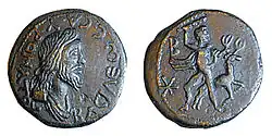 There are no known coins from the Bosporan Kingdom after the last ones minted by Rhescuporis VI in 341, which makes constructing a chronology very difficult. Though the kingdom is traditionally believed to have been destroyed at the end of his reign by the Goths and the Huns,[20] there is no concrete evidence for this.[21] There is an inscription by a Bosporan ruler named Douptounos from c. 483, nearly a century and a half after Rhescuporis VI, which makes it unlikely that the kingdom and its line of kings came to an end in the mid-4th century. Additionally, archaeological data from the time indicate a period with a growing economy rather than societal collapse.[21]