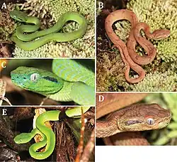 - ^ a b c d e f g h Townsend, Josiah; Medina-Flores, Melissa; Wilson, Larry; Jadin, Robert & Austin, James (2013). "A relict lineage and new species of green palm-pitviper (Squamata, Viperidae, Bothriechis) from the Chortís Highlands of Mesoamerica". ZooKeys (298): 77–105. doi:10.3897/zookeys.298.4834. PMC 3689108. PMID 23794885.