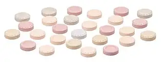 Bottle Caps are sweet tablet candies made to look like metal soda bottle caps in grape, cola, orange, root beer, and cherry flavors. Bottle Caps candy was originally introduced by Breaker Confections in 1972.[1] They are currently sold by the Ferrara Candy Company.