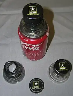 The caps were one of the first PET plastics (polyethylene terephthalate) to ever be injection molded, and the first prototype was done by a company located out of Hemet, California named Ramko Manufacturing. Because of the extreme heating and cooling in the process, the molds were made with beryllium inserts.[5]