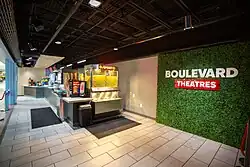Boulevard Theatres opened its first location May 2022 in Towne West Square.[2] The location is in the former Warren Theatres Movie Machine, a 5 screen multiplex.[3] In preparing this theatre for opening, Boulevard Theatres installed new projectors and sound, refreshed the auditoriums and remodeled the lobby and concessions area, introducing Wichita's first fully self-serve movie theatre concessions.[4]