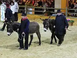 The Bourbonnais Donkey, French: Âne Bourbonnais, is a French breed of domestic donkey from the historic region of the Bourbonnais, which corresponds roughly with the modern département of Allier, in the Auvergne region of central France. It was in the past used as a pack animal, for hauling barges, and to pull light gigs. The breed was recognised by the Ministère de l'Agriculture, the French ministry of agriculture, in 2002. The stud-book is kept by the Association de l'Ane Bourbonnais, an association of breeders.[6]