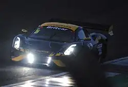 The BT62 made its racing debut in the infamous 'Into the Night' race at Brands Hatch, competing in the 2019 Britcar Endurance Championship on the 9th and 10 November.[14] On the 21st of October, it was announced that David Brabham and Will Powell will pilot the car in the races.[15][16] The car started from pole position in the first race and eventually won its first ever race outing.[17] In the next race, on Sunday, Will Powell lead the field away before a safety car came out. The BT62 pitted with an alternator problem, he rejoined the race initially but the car eventually retired, only completing 17 laps.[18] The BT62 Competition ran in the 2020 Britcar Endurance Championship driven by reigning champion Paul Bailey, alongside British GT4 and Britcar champion Ross Wylie, who is also Brabham Automotive's development driver. This was the first customer-purchased BT62 to race in motorsport.[19] In the South Island Endurance Series in New Zealand, owner Dwayne Carter and three-time Supercars Champion Shane van Gisbergen raced a Brabham BT62 at Euromarque Motorsport Park in a 3 hour endurance race, but had a right rear wheel come off on the second lap and returned to the track over 30 laps down an hour into the race, before retiring the car later on in the race before van Gisbergen could even turn a lap.