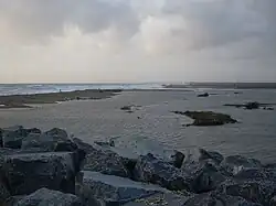The earth embankment at Medmerry holding back the sea was originally built in the 1960s; however the coastline in the area was subject to frequent flooding events which were becoming unsustainable.[6] The scheme arose out of consultations from the 2008 Pagham to East Head Coastal Defence Strategy with the managed realignment scheme being adopted.[7] In 2013 the Environment Agency completed the new 7 km inland floodbank and breach in the shingle wall to providing flood relief and this enabled creation of the form the Medmerry RSPB nature reserve. The scheme cost £28 million and was the largest open-coast scheme in Europe and understood to be one of the most sustainable projects the Environment Agency has completed.[8][9]