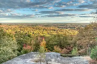The park's namesake has been described as a "small, inconspicuous hill, less than 500' high," that despite its size offers panoramic views that make the park one of the more popular ones in the state.[5] The underlying material of granite and pegmatite is exposed at the summit.[5]