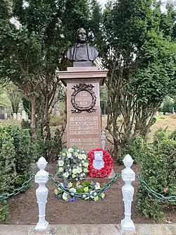 Bradlaugh died on 30 January 1891. His funeral was attended by 3,000 mourners, including a 21-year-old Mohandas Gandhi.[34][35][36] He is buried in Brookwood Cemetery in Surrey.[37]