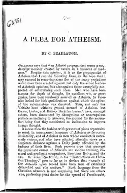 - ^ "A Plea for Atheism : Bradlaugh, Charles, 1833–1891 : Free Download & Streaming". Retrieved 15 July 2016.