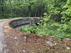 The coast guns were such an important part of the defence of the country that considerable efforts were made to protect them from landings of enemy troops that might put them out of action. The battery had a defended perimeter comprising, from inside out, a firing trench, a 10 foot high 'palisade' fence, and a barbed wire entanglement. The barrack building was heavily fortified and the outward facing side contained firing loop holes. The site was also surrounded by a ring of six blockhouses inland and along the shore.[2][3]