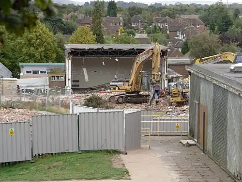 In the Summer of 2009 demolition of the unsafe blocks in the upper school was completed, demolishing the science block, 3 storey tower block, and the 6th form block, leaving the gym, changing rooms, barn, and the art and music block, built by more recent construction. Prompt demolition was favoured to reduce the running costs of empty buildings.[32]