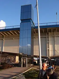 Bicycle elevator, directly connecting the promenade along the Sava and the bicycle path across the bridge, was designed by Milutin Gec, and built in 2004.[13]