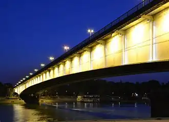 Branko's Bridge (Serbian: Бранков мост, romanized: Brankov most) is the second-largest bridge (after Gazela) of Belgrade, Serbia, connecting the city center with New Belgrade across the Sava river. Built in 1956 on the foundations of the 1934 King Alexander Bridge, which was destroyed in World War II, it reconnected Belgrade and Zemun as the only motorway bridge at the time. After several official and unofficial names, the present name stuck after the Brankova Street, which extends into the bridge from the direction of the old section of Belgrade.
