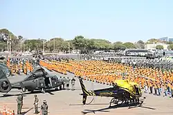 Among the broken paradigms was the traditional aircraft monopoly held by the FAB.[19] The navy and air force had already fought a long battle over embarked aviation on the aircraft carrier Minas Gerais. The "Castelo Branco corollary", of 1965, allowed the navy to operate helicopters, but kept the planes with the FAB.[22][23] A new dispute arose when the army unsuccessfully attempted to purchase Bell H-1H helicopters in 1969.[24] But Army Aviation, also made up of helicopters, was created without fanfare or contrary campaign.[25] Air Force officials already recognized the tactical need for helicopters in the army and navy.[26] Army Aviation was formally recreated on 3 September 1986.[27]