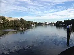 One of the white first settlers on the creek was Patrick Leslie who, in 1845, built the still-standing Newstead House. Brisbane's Cantonese community, who had established businesses in Fortitude Valley and built the Temple of the Holy Triad in 1886, settled in the flats around Breakfast Creek and Eagle Farm.[4] During dry times in the early colony of Moreton Bay, when water from the Roma Street reservoir was depleted, supplies were carted from Breakfast Creek.[5]