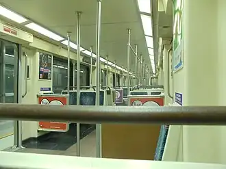 To allow service on further phases of the Red Line, Los Angeles Metro ordered an additional 42 cars in 1994, and a further 32 vehicles in 1996.[9][10] These cars were built in Pistoia between 1995 and 1997, with the first arriving in Los Angeles in September 1996.[10] Unlike the first batch, these trains use AC (3-phase AC 4-pole asynchronous) traction motors which are lighter and more efficient than DC traction motors and there are lights above the doors that flash when the chime sounds before closing the doors. They also use VVVF inverter control using GTO thyristor technology, manufactured by General Electric.[10]