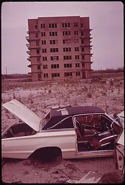 The community began as summer beach bungalows, in the "early 1900s", according to the New York Times although this is impossible because at the time the shoreline was further east until landfill extended the Rockaways.[10] Breezy Point was sold to the Atlantic Improvement State Corporation for $17 million in 1960. The residents of the community purchased half of the land for approximately $11 million and formed the Breezy Point Cooperative. Today, it consists of about 3,500 homes.[11] The construction of apartment buildings commenced in the late 1960s and was halted by City ordinance.[12]