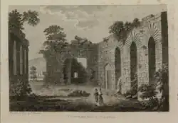 He was given refuge by Eoghan Óg, Chief of Mac Suibhne na d’Tuath, and stayed in his castle on the western shores of Tyrconnell for a year.[24] He travelled to Scotland in February 1591 bearing gifts (including four Irish Wolfhounds), in anticipation of a meeting with King James VI, seeking to raise an army of mercenaries and retake his kingdom.[25] In consultation with the English ambassador, King James VI denied him an audience and was pressured by Queen Elizabeth I to arrest him and deliver him to England, citing the agreements made in the Treaty of Berwick. After much debate and controversy, Ó Ruairc was arrested in Glasgow on 3 April 1591 and delivered into English custody. He was kept at the Tower of London and was put on trial and asked to pledge to the crown, accepting all prior agreements, and to denounce his Catholic faith. In response, he refused to recognise the authority of the court or Elizabeth and did not plead mercy. On charges that he failed to show proper "reverence" to the Queen when he allegedly dragged a portrait of her through the mud and then tore it apart, he responded that there was "a great difference between images of your Queen and those of saints". He was hanged, drawn and quartered for high treason on 3 November 1591.[26][27][28]