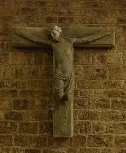 The eastern crypt contains the bodies of almost ninety graves of bishops, archbishops, and other notables. Furthermore, it contains two sculptures from the western façade, the coronation of Saint Mary from the attic and the relic of the crucifixion from the southern central arch.