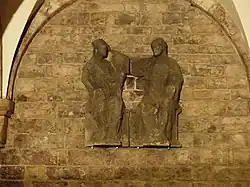 At Easter 1334 Prince-Archbishop Burchard Grelle claimed to have found the skulls of the Saints Cosmas and Damian. He "personally 'miraculously' retrieved the relics of the holy physicians Cosmas and Damian, which were allegedly immured and forgotten in the quire of Bremen Cathedral.[3] In celebration of the retrieval Prince-Archbishop and cathedral chapter arranged a feast at Pentecost 1335, when the relics were translated from the wall to a more dignified place." (For the original quotation see the note)[4] Grelle claimed the relics were those Archbishop Adaldag brought from Rome in 965. In about 1400 the cathedral master-builder Johann Hemeling commissioned a shrine for the relics, which has been accomplished until after 1420. The shrine from carved oak wood covered with gilt rolled silver is considered an important mediaeval gold work.[5] In 1649 Bremen's Chapter, meanwhile Lutheran, sold the shrine with the alleged relics to Elector Maximilian I of Bavaria. It is now shown in the Jesuit church of St Michael in Munich.