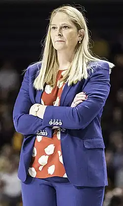 Brenda Sue Frese (born April 30, 1970)[1] is an American women's basketball head coach and former player. Since 2002, she has served as the head coach of the University of Maryland women's basketball team. In her fourth year as head coach, she won the 2006 Women's National Championship. She won the 2009 ACC Regular Season and Tournament Championships – the women's first ACC Championship since 1989. She won another ACC Championship in 2012 and reached another Final Four in 2014. Maryland moved to the Big Ten for the 2014–15 season and Frese led the Terrapins to an undefeated 18–0 conference record and a Big Ten Regular Season Championship in their first year in the Big Ten. The Terrapins advanced to their second straight Final Four and third under Frese in 2015. She was voted AP National Coach of the Year in 2002 and 2021,[2] ACC Coach of the Year in 2013, Big Ten Coach of the Year in 2002, 2015, 2019, and 2021, and MAC Coach of the Year in 2000. At Maryland, she's coached four ACC Players of the Year and four ACC Freshmen of the Year.