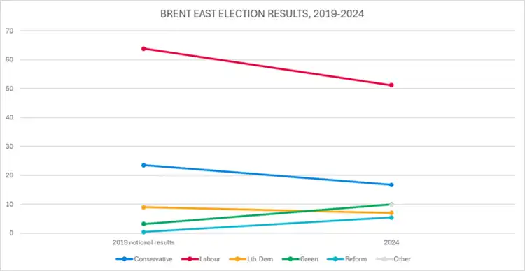 - ^ "Brent East notional election - December 2019". Rallings & Thrasher, Professor David Denver (Scotland), Nicholas Whyte (NI) for Sky News, PA, BBC News and ITV News. UK Parliament. Retrieved 11 July 2024.