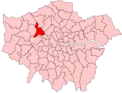 The original constituency was one of three covering the London Borough of Brent in north-west London, covering the areas of Brondesbury, Dollis Hill, Kilburn and Neasden, as well as parts of Willesden and Cricklewood.