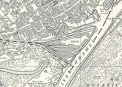 The dock provided a trans-shipment point for goods between the railway network and barges operating on the Thames to the Port of London.[5]