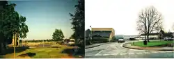 The Woodgreen estate lies in the intermediate area between the Neithrop and Bretch Hill housing estates[1][2][3] and was built over the former Victorian village of Wood Green in the 1930s. The name 'Woodgreen' was hyphenated from 1927 to 1937, and merged by 1947. An Ordnance Survey map from 1882 reveals Park Road and part of Queen's road were partly built. Queen's road was completed by the 1900 map edition and King's road was mostly completed by the 1922 edition. Banbury's Woodgreen Youth Centre was built in 1964 and opened in 1965.[15][16] It is situated in Woodgreen, next to both the Neithrop Library[17] and the Woodgreen Leisure Centre.[18][19][20][21][22] The low rise flats called Kennedy House were named after US President John F. Kennedy when they were built in the mid-1960s.