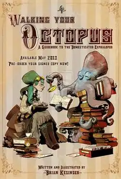Two of his most popular characters are the unlikely duo of Victoria Prismall, an independent young lady, and Otto (Italian for 'eight'), her live-in octopus who is a friend, butler and pet. They have appeared in books, prints, T-shirts, and more. Kesinger has published his first illustrated book on the couple, Walking Your Octopus: A Guide to the Domesticated Cephalopod. He describes it as "a satirical look at how we all can get a little carried away with how we raise our pets. It’s certainly inspired by my own dog Scout but also inspired by the ups and downs of raising two young children with my wife. My hope is that the book speaks to not only steampunk fans but pet owners and parents as well." Thirty full-page illustrations portray the couple at home and about, bathing, biking, dating, cooking, playing croquet, pumpkin carving, and other activities necessary for the spiritual well-being of an intelligent and worldly octopus.[2][3]