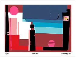 In addition to a highly successful career as a writer, Aldiss was an accomplished artist. His first solo exhibition, The Other Hemisphere, was held in Oxford, August–September 2010, and the exhibition's centrepiece Metropolis (see figure) has since been released as a limited edition fine art print.[23] (The exhibition title denotes the writer/artist's notion, "words streaming from one side of his brain inspiring images in what he calls 'the other hemisphere'".)[23]