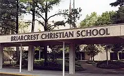 By 1988, the school's enrollment had dwindled to 1,473 students and the school was in a precarious financial situation. School leaders feared the school would not have funds to reopen after the 1988–89 Christmas break, but a combination of teacher layoffs, staff pay cuts, and emergency fundraising allowed the school to continue classes.[15] In 1989, the school split from the founding church and re-chartered as an independent school under the name Briarcrest Christian School.