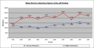| 2005 [SL] | 13,894[53] | 25,004 (vs. St Helens R.F.C.)[53] |