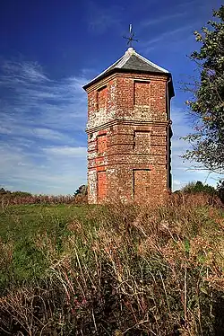 The Pepperbox, on a hill in the northwest corner of the parish, is a three-storey hexagonal brick tower from the early 18th century[19] or perhaps 1606.[20] Possibly built as a hunting lookout,[20] the ground floor arches and the windows were at some point bricked up; the tower and hillside are now owned by the National Trust.[21]