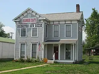 Originally Bridgeton was known as Lockwood Mills for the local mill, but later became known as Sodom because of the drinking and fighting that took place. On Saturday's and public days the mill acted as a community social center with people conducting business and exchanging gossip. For twenty-five cents a gallon of whiskey could be bought and the townsmen would engage in horse races and sometimes fights.[5] The village applied for a post office in 1849 and the name was changed to Bridgeton. The original plat was recorded the same year which included most of the town as it exists today.