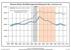 - ^ "Bevölkerungsstand im Land Brandenburg Dezember 2023] (Fortgeschriebene amtliche Einwohnerzahlen, basierend auf dem Zensus 2022)". Amt für Statistik Berlin-Brandenburglanguage=German.