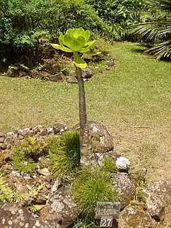 Brighamia insignis, commonly known as ʻŌlulu or Alula in Hawaiian,[3] or colloquially as the vulcan palm[4] or cabbage on a stick,[5] is a species of Hawaiian lobelioid in the bellflower family, Campanulaceae. It was native to the islands of Kauaʻi and Niʻihau, but has been extinct in the wild since at least 2020. This short-lived perennial species is a member of a unique endemic Hawaiian genus with only one other species.