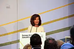 Bierlein had no political affiliation.[15] She was seen as solidly right of centre. During her time as a prosecutor, she was noted for her hardline tough-on-crime stance, although her years on the bench have earned her a reputation for civility and for working well with ideological opponents.[6][4] Commentators from both sides of the political spectrum noted Bierlein's close ties to both People's Party and Freedom Party, as well as the fact that her career owed both its unexpected major breaks to right-of-centre coalition governments.[6][7][5][16]