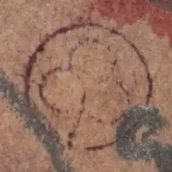Since 1856, several of the stamp's owners have placed a personal mark on the rear, or verso, side of the stamp.[6] In its 2021 auction catalogue note for the stamp, Sotheby's described "the eight marks of its keepers for the past one hundred and forty-three years," including the "purple trefoil stamp of Philipp La Rénotière von Ferrary" and the "comet handstamp of Frederick Small."[6] Finbar Kenny, who brokered the purchase of the stamp for Small, also left his initials.[6] At least seven different individuals have left a mark on the reverse of the stamp.[23]